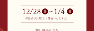 年末年始の休校日をお知らせいたします。2025/12/28㈰~2026/1/4㈰まで休校とさせていただきます。年始は1/5㈪よりスタートいたします!来年もリーベケアスクール深井校をよろしくお願いいたします!